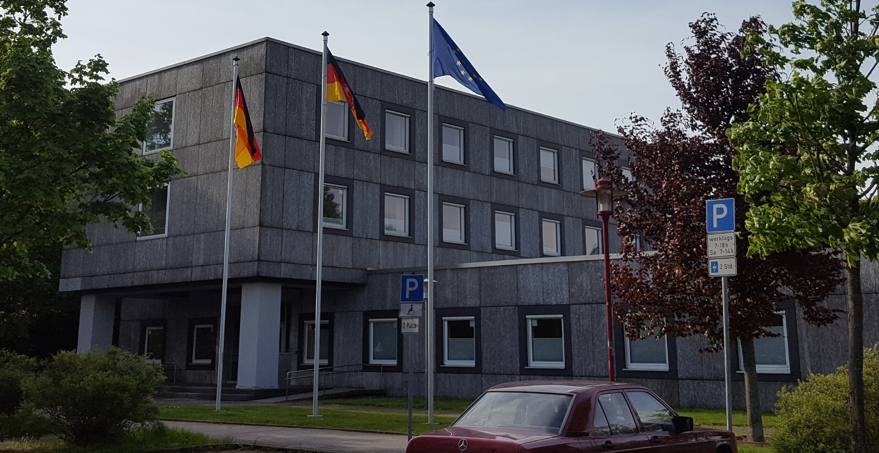 In der Schlesischen Straße - zwischen dem Hauptgebäude und der Nebenstelle des Amtsgerichts - befinden sich öffentliche Parkplätze für Menschen mit Behinderung.
